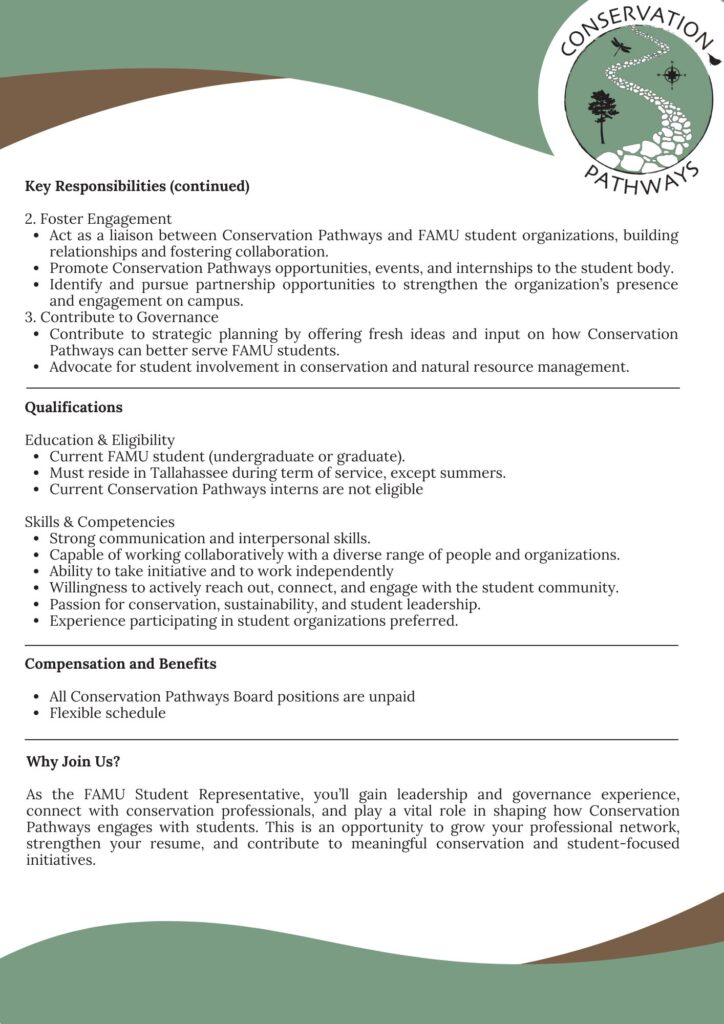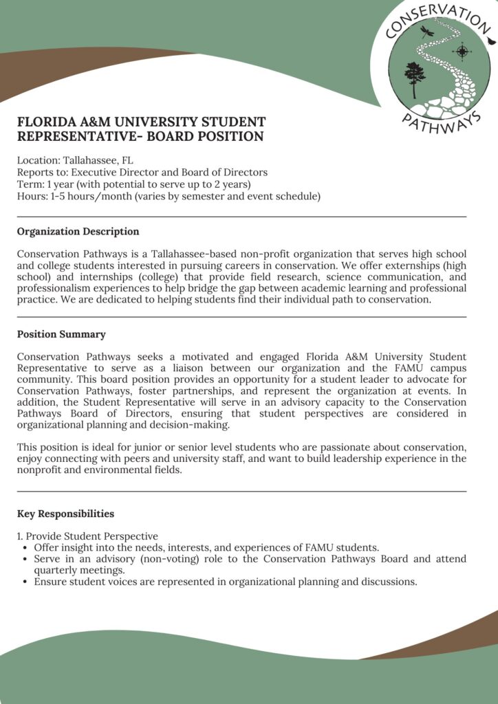We have an opening for our FAMU Student Rep board position